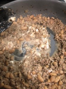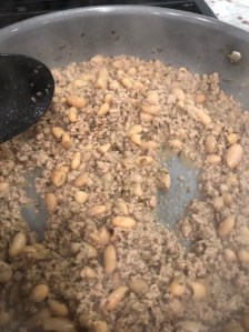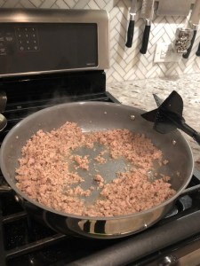 1. Brown Ground Turkey (in a pan big enough to hold all liquid needed for the recipe) and onion – about half way through add garlic.