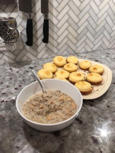And let it tighten up – stiring occasionally but you don’t have to babysit it. Which is nice for a Mom of 2 – I can start this and walk away and just pop in on it here and there to stir!